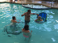 I still had to login to work and accomplish some things before we went on Monday but in between I was able to help get everyone packed and the car loaded. (The car's gas mileage really goes down with 2 bikes strapped to the back) Ale's parents left earlier than us because they wanted to stop at the Grove City Outlets but we met up with them around 7 pm for a fancy dinner right by our hotel. We got rooms next to each other which was nice. The whole hotel was pretty cool. I'd come back here again. No real complaints. The boy loved the pool. I know at least one day he hung with some girls staying here for several hours.